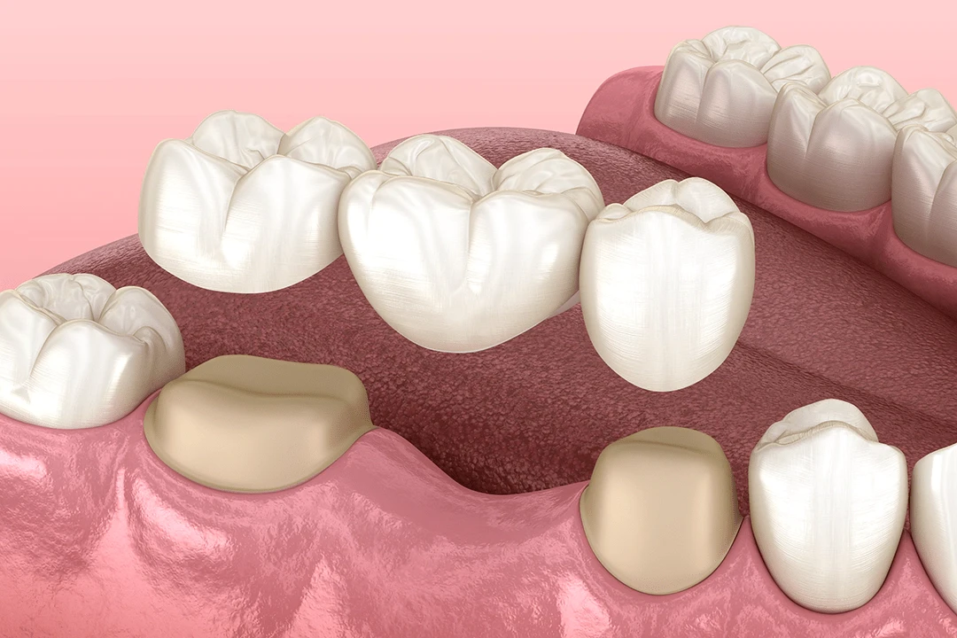 Kronen schützen geschwächte Zähne, Brücken schließen Zahnlücken dauerhaft und festsitzend. Form, Farbe und Biss werden präzise an Ihre natürliche Zahnstruktur angepasst.